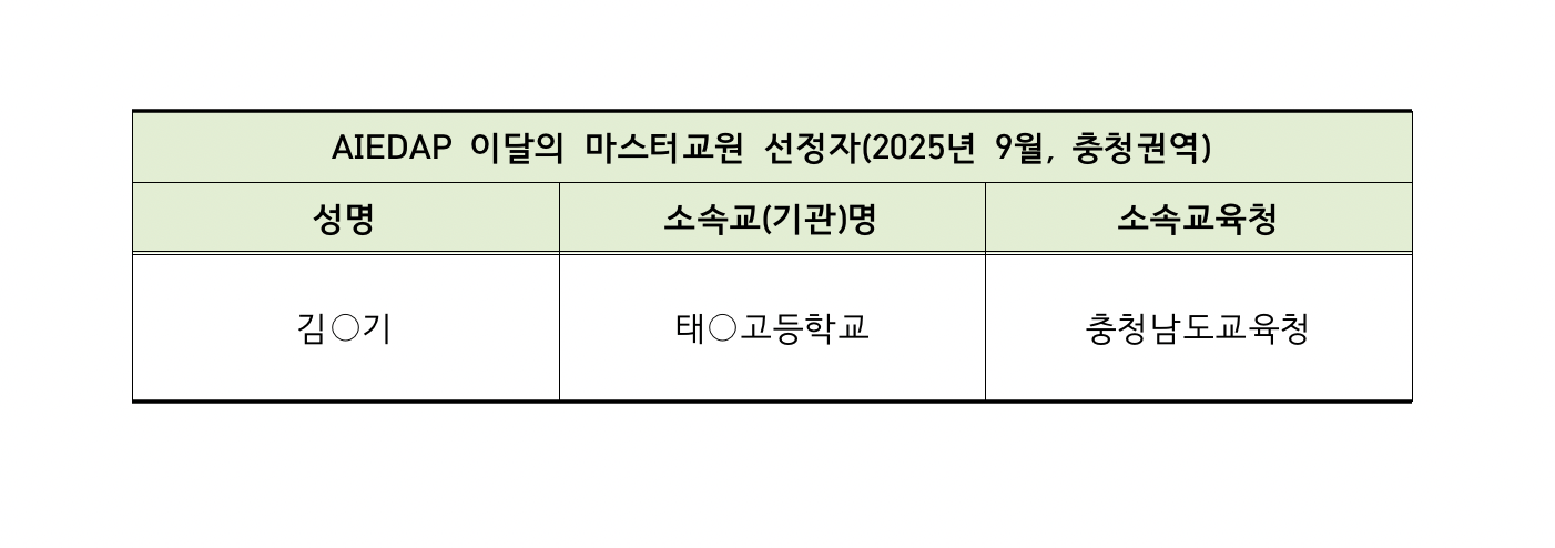 [AIEDAP 이달의 마스터교원] 2025년 9월 충청권역 선정교사 안내