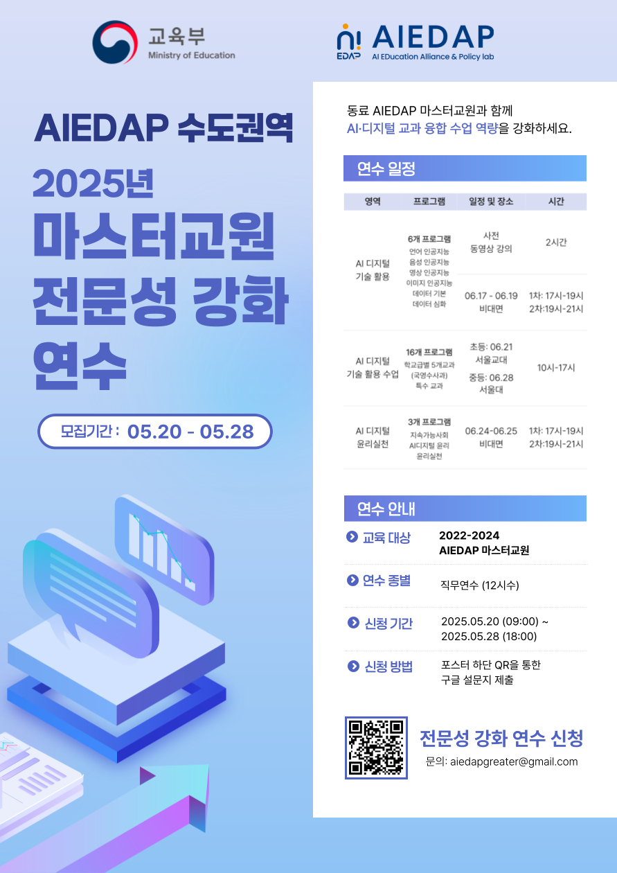 2025 AIEDAP 마스터교원 신규연수(기한 연장, 9/30(화)까지)