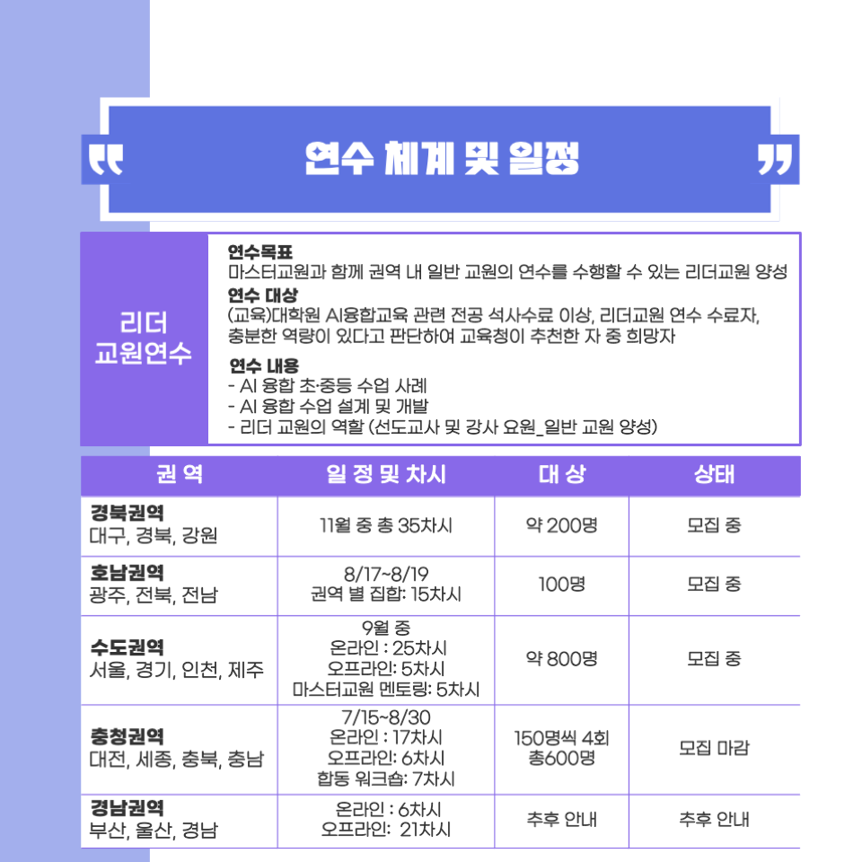 AIEDAP 현직교원 연수일정